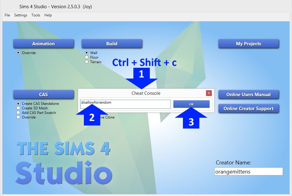 - Abre el Sims 4 Studio y haga clic en la tecla Ctrl, la tecla Shift y la tecla c en su teclado, todo al mismo tiempo, esto hará que aparezca la consola de trucos