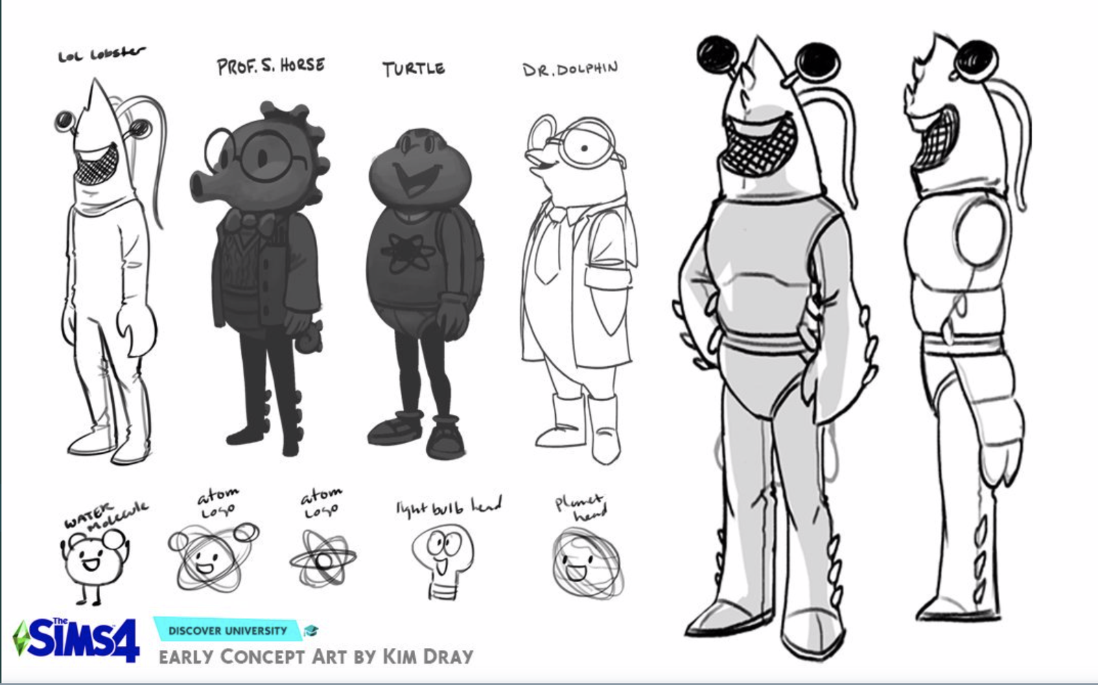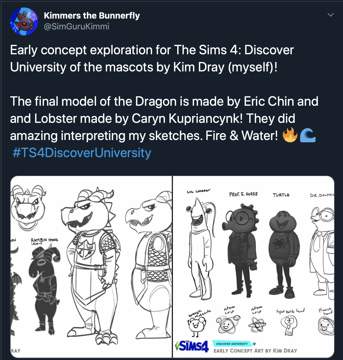 Ayer uno de los Simsgurus, más bien, SimguruKimmi nos sorprendía con tweet sobre algunos de los bocetos iniciales de las mascotas de Los Sims 4 Días de Universidad.