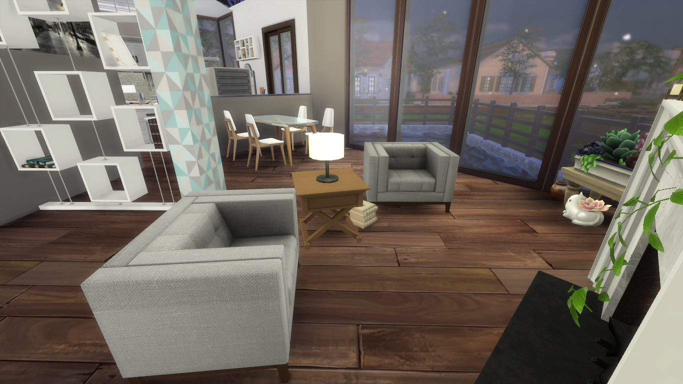Por ejemplo en mi caso y según la pequeña descripción que he realizado antes de la situación de cada sims, este es el resultado de la casa exteriormente: