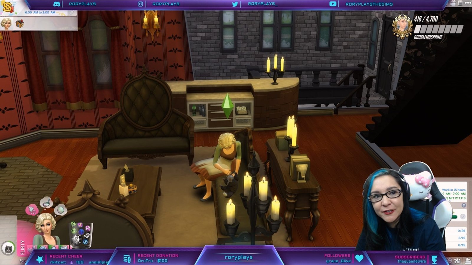 La capacidad de la franquicia de Los Sims de dejar que los jugadores cuenten su propia historia es perfecta para hacer streaming. Un montonal de modificadores, una comunidad activa y personajes de lo más variopintos hacen que no haya dos retransmisiones iguales. La streamer de Twitch, RoryPlays, se vio envuelta en esto por ser aficionada a la franquicia y ahora Los Sims son una parte fundamental de su trabajo. Platicamos con RoryPlays sobre su amor por el streaming, los videojuegos y Los Sims.