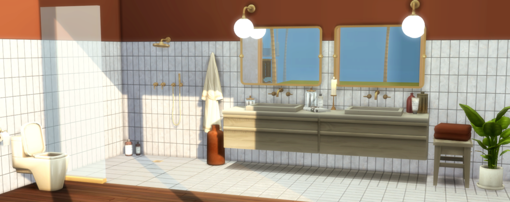 Una nueva entrega de Contenido Personalizado en la colección “Oak House part 4” nos trae el desarrollador de CC @Pierisim con todo el glamour de baños de ensueño ¿Un ñiki-ñiki en estas hermosas duchas? ¿Un discurso en esos espejos de oro o bronce? ¡No se diga más! Este contenido llenará de estilo tus partidas en Los Sims 4.