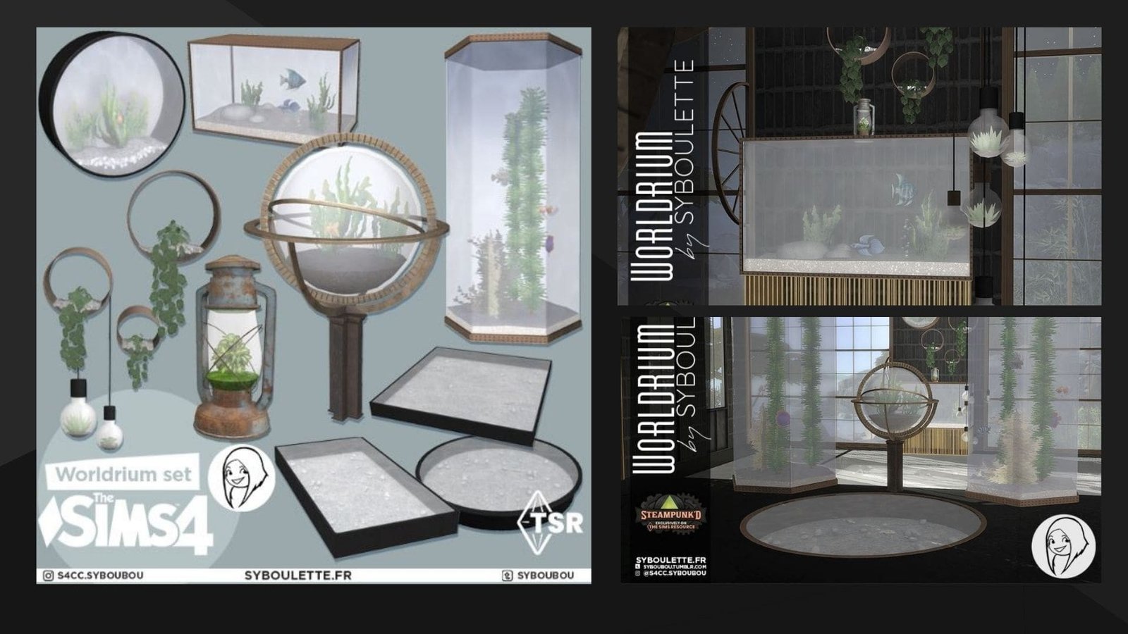 ¿Eres un apasionado de los acuarios? Pues no te pierdas el nuevo set de muebles “Wordrium” para los Sims 4 creado por Syboulette.