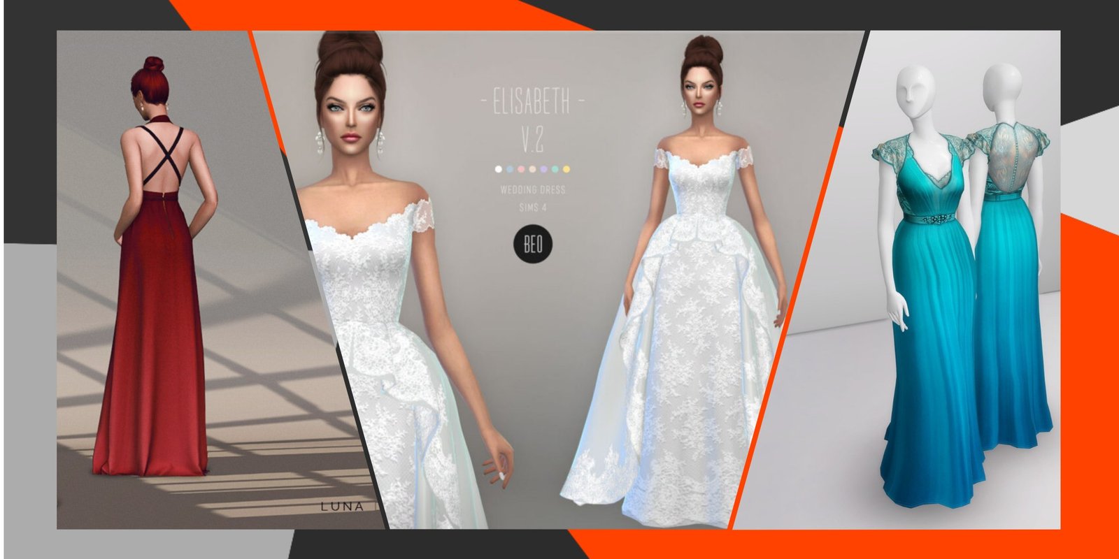 Muchas veces quieres un vestido bonito para tus sims cuando estos contraen matrimonio, pero ¿Dónde hay? ¡Pues aquí en Simlish4 os traemos algún que otro CC para vosotros! ¡Vivan los novios!