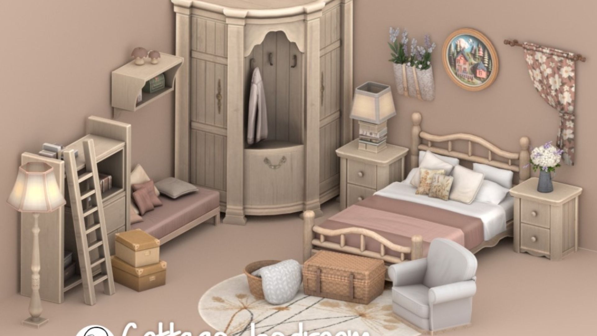 Syboulette ha creado este fantástico set de muebles de habitación estilo granja para los Sims 4.