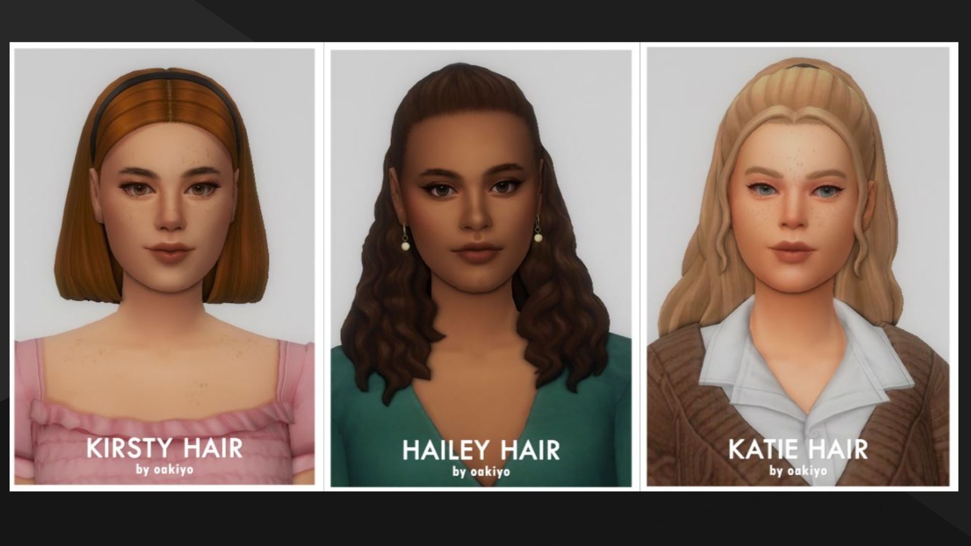 Hoy os quiero compartir cuatro hermosos peinados Maxis Match para mujer creados por Oakiyo para los Sims 4.