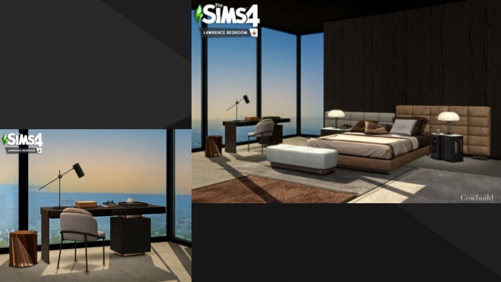 Durante la semana he estado reformando las casas de mis sims y me he encontrado con este maravillo set de muebles “Minotti Lawrence” de habitación para los Sims 4 creado por Cowbuild.