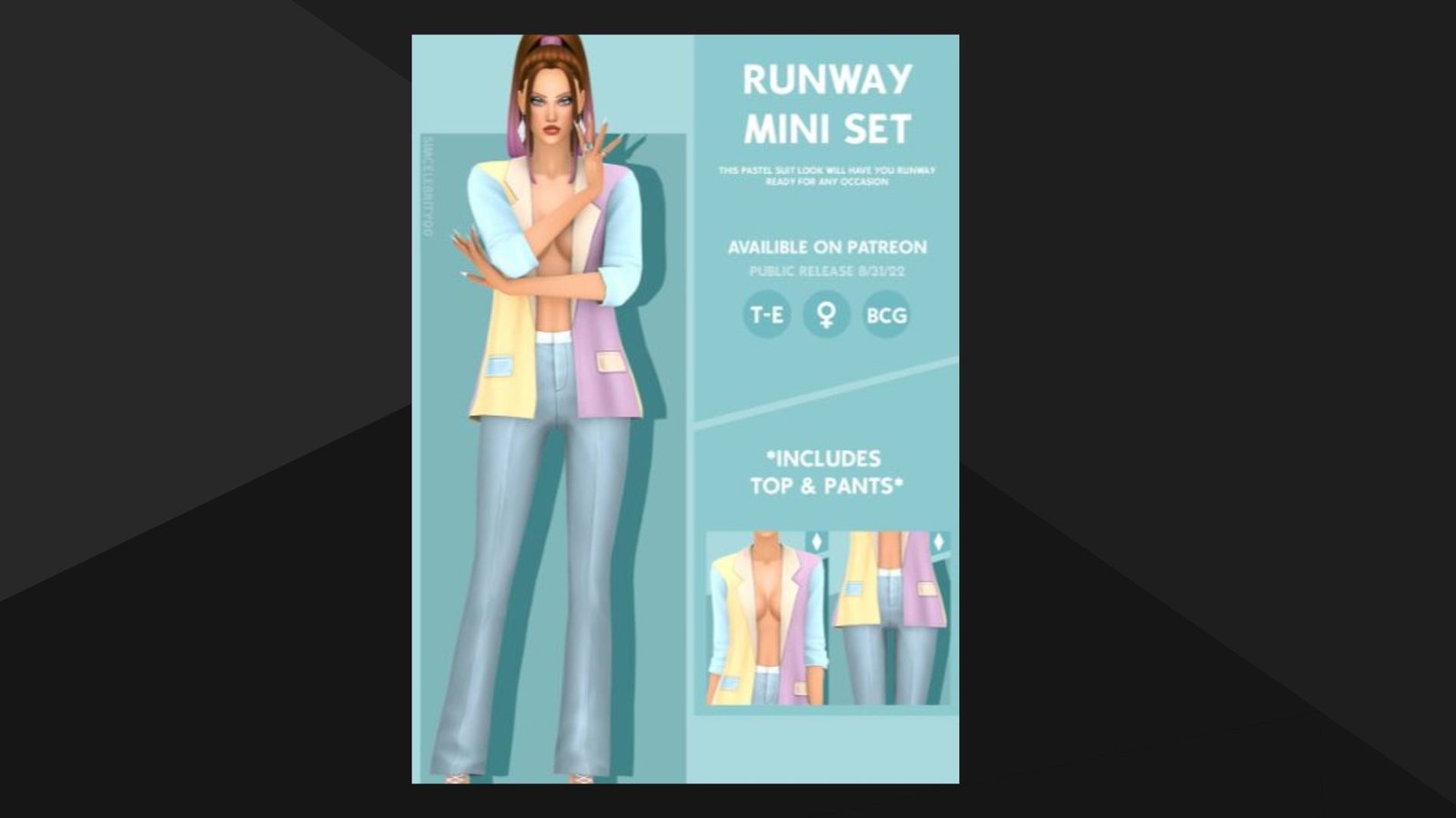 Simcelebrity00 ha creado este fantástico set de ropa maxis match para mujer para los Sims 4.