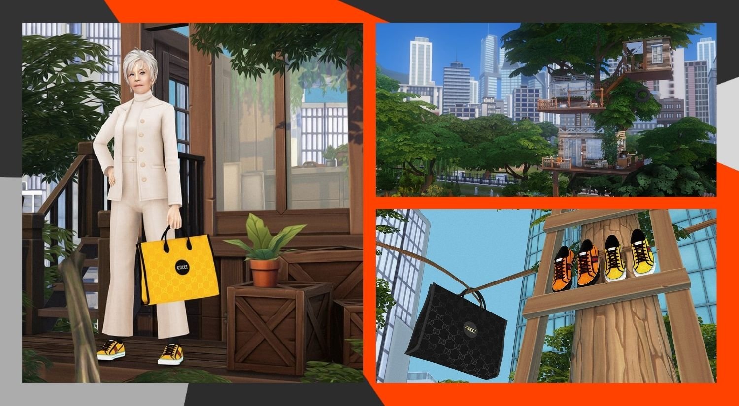 Esta colaboración ha consistido en una colección de ropa inspirado en accesorios reales de la marca Gucci y una construcción sustentable para Los Sims 4 basado en la campaña real de la marca la cual es protagonizada por Jane Seymour Fonda.