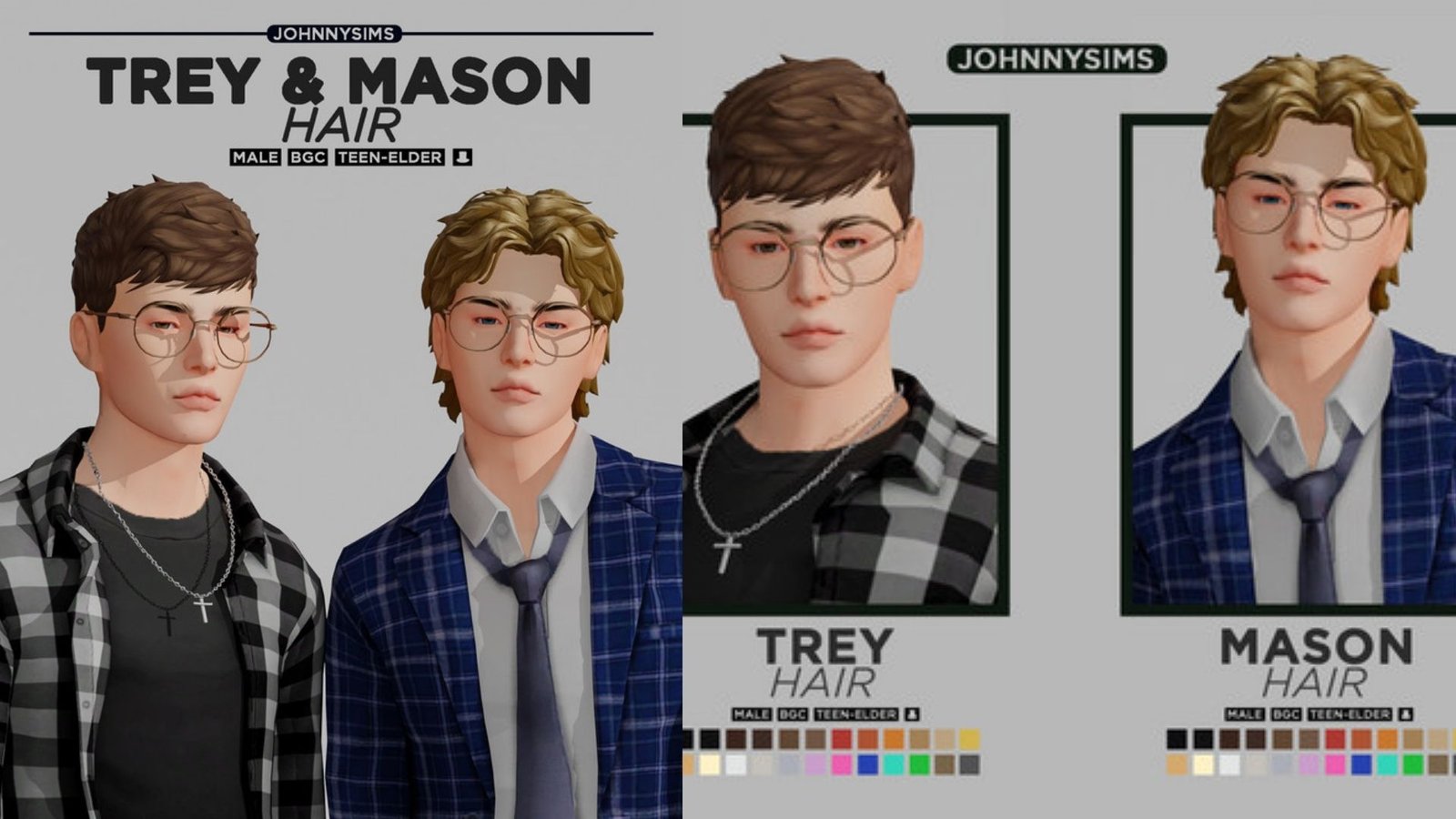 CC:”Trey & Mason” peinados para chicos en Los Sims 4 por Johnnysims