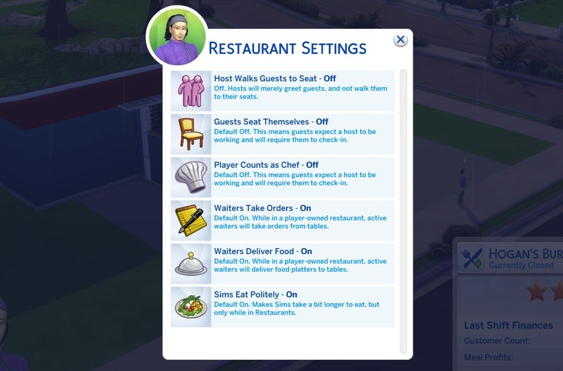 Este mod te da además, la opción de personalizar la estancia de su restaurante. Es posible que no desee Metres que asignen los asientos a los clientes. Esto evitará que los Metres acompañen a Sims a sus asientos y, en su lugar, les indicará una mesa a la que ir solos. Incluso puede omitir al metre y usar la nueva opción “Los invitados se sientan solos”, que omitirá la etapa de llegada por completo. Los Sims entrarán y caminarán hasta una mesa disponible. Administrar un restaurante puede ser difícil, por lo que el mod te ofrece opciones que ayudarán a los jugadores de Sims 4 a personalizar un poco más la experiencia. Puede decidir si los camareros son los encargados de entregar las comidas y tomar los pedidos. Deshabilitar cualquiera de estos hará que tu Sim o los miembros de su familia realicen estas acciones. Esto puede darle más tiempo para cocinar o sentar a los invitados, o conversar con los clientes para obtener esas reseñas de 5 estrellas.