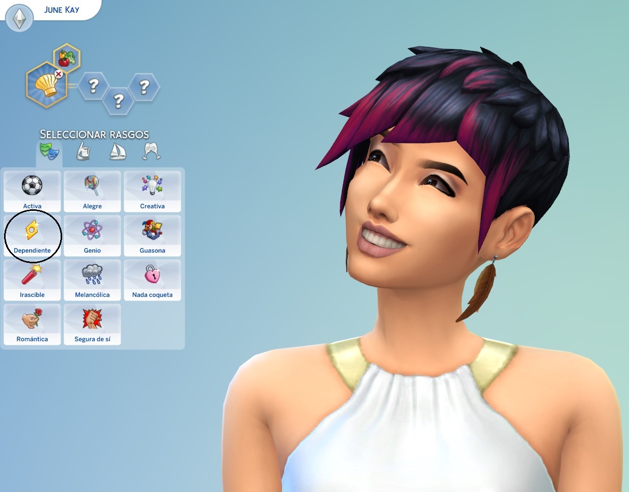 • DEPENDIENTE: Estos Sims requieren mucha atención por parte del resto.