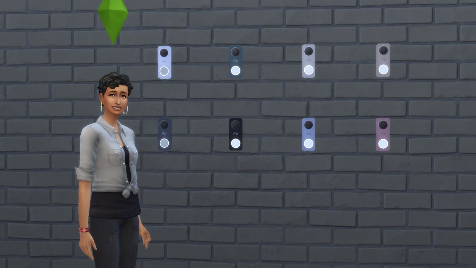 Este timbre que puedes colocar en la puerta principal de tu casa no solo sirve para llamar a la puerta, también tiene un detector de movimiento y reconocimiento facial que mantendrá a tus Sims bien informados de lo que pasa fuera de casa.
