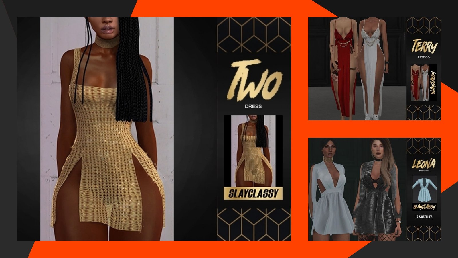 Hoy os traigo un par de vestidos bonitos pero a la vez con un toque de sensualidad para vuestras sims que le quedaran estupendos.