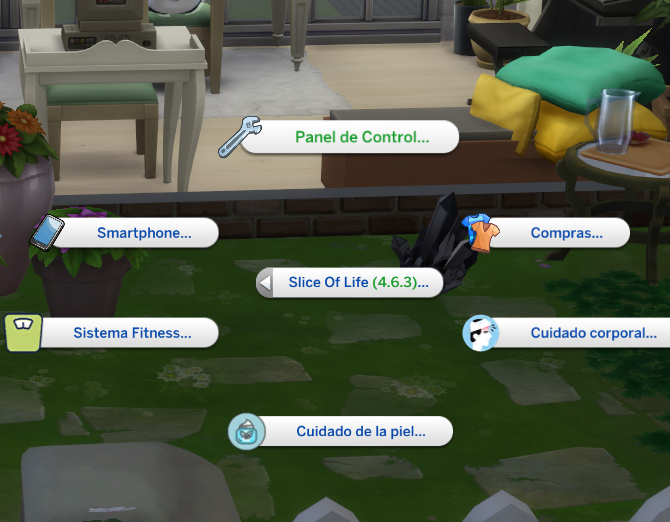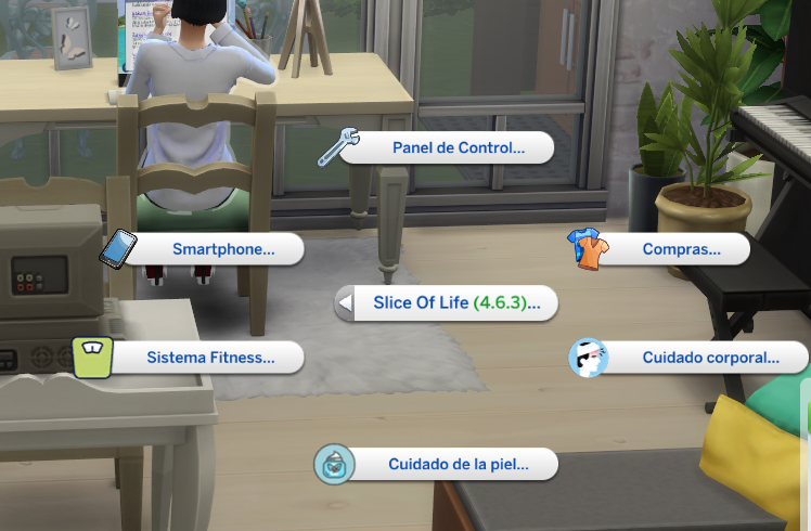 Una vez das Click al icono del Slice of life se abre el menú y las opciones múltiples que posee el mod y la posibilidad de gameplay, importante que se debe saber es que este Mod posee una base de gameplay mucha más amplia que afecta directamentee internamente al juego, incorporando nuevos recuerdos, sensaciones, emociones y notificaciones (moodlest) según lo vivido, estado del Sim etc…