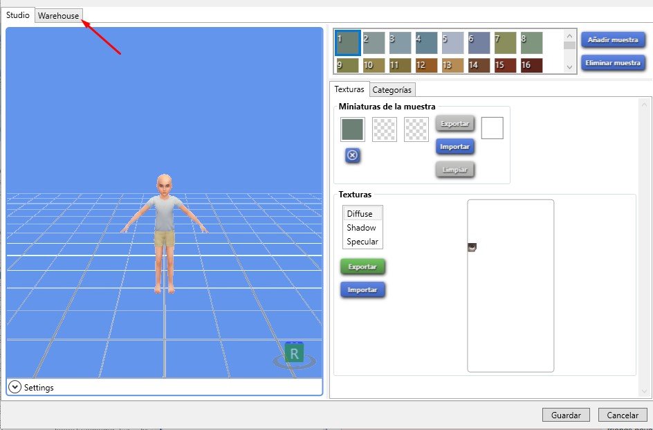 Paso 2: Cuando ya tengas el .package abierto, dale a la pestañita de WAREHOUSE mostrando la siguiente pantalla: