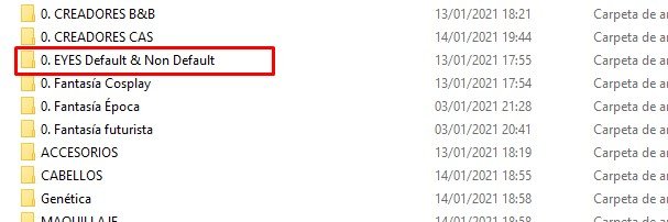 Consejos: Cuando hice este tutorial antes de traéroslo, hice una carpeta específica en mi carpeta de mods para ir directamente a esa carpeta y no perderme entre tanto CC. Meted todos vuestros ojos NON-DEFAULT o DEFAULT y así os ahorraréis mucho tiempo de buscarlos.
