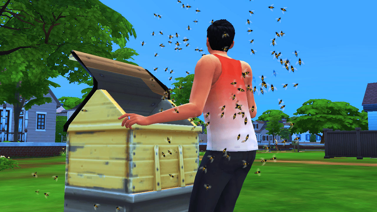 Si las abejas están enfurecidas puedes estar seguro de que atacarán a cualquier sim que se acerque aunque sea un poco a ellas, lo cual les dará el estado de humor incómodo.