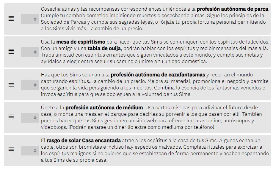 Hemos seleccionado 5 posibles temas para este pack. En primer lugar, tendrás que ordenar las posibles características de juego dentro de cada uno de los temas, de más a menos favoritas. Una vez que hayas leído todas las características, procederás a ordenar los temas propiamente dichos por orden de preferencia.
