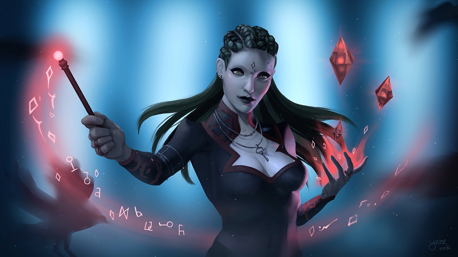 @Yumenoki, una Simmer ilustradora muy talentosa, nos trae un arte sorprendente, ha ilustrado a una maga que se encarga de entrenar al protagonista del tráiler oficial de Los Sims 4 Y el Reino de la Magia.