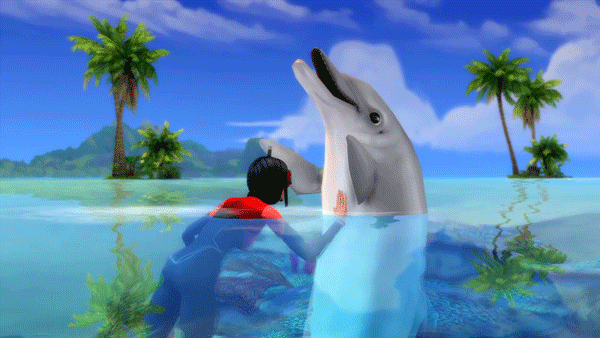 No ignores al delfín cuando tu Sim esté nadando.