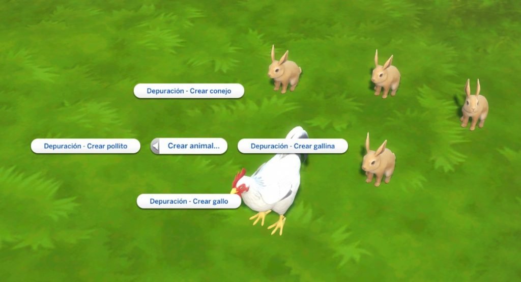 Puedes hacer aparecer conejos, gallinas, gallos y pollitos en cualquier parte del solar o en el mundo, solo tienes que presionar la tecla SHIFT + Dar clic en la tierra: