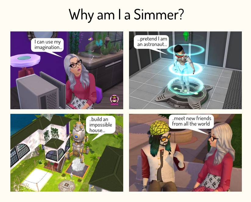 - Create a story with The Sims Mobile or The Sims Freeplay where you tell us Why do you like being a Simmer?