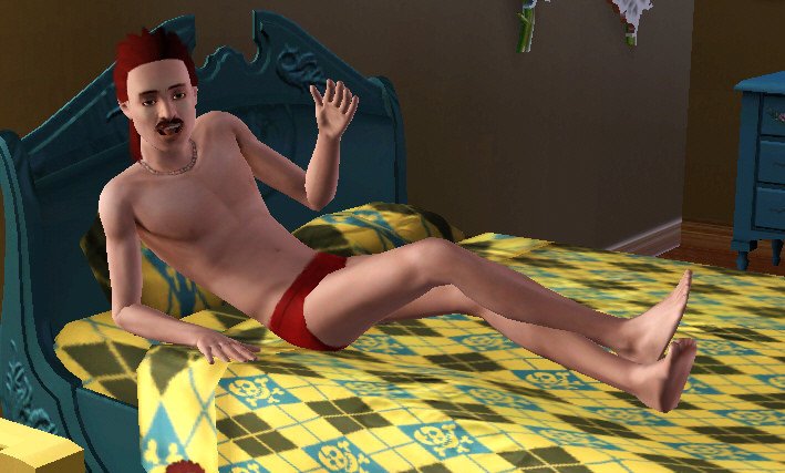 Si creas un Sim que parece típico, puede ser difícil ver si sus características realmente aparecen en sus hijos. Por lo tanto, nuestro productor le dio a Chester un flamante pelo rojo y largo atrás, bigote oscilante, cuerpo delgado y nariz grande. Entonces, consiguió trabajo. Y por trabajo, quiero decir que hizo que Chester se hiciera amigo de todas las mujeres solteras de la ciudad, que les hablara dulcemente, y luego se quedara a pasar la noche.