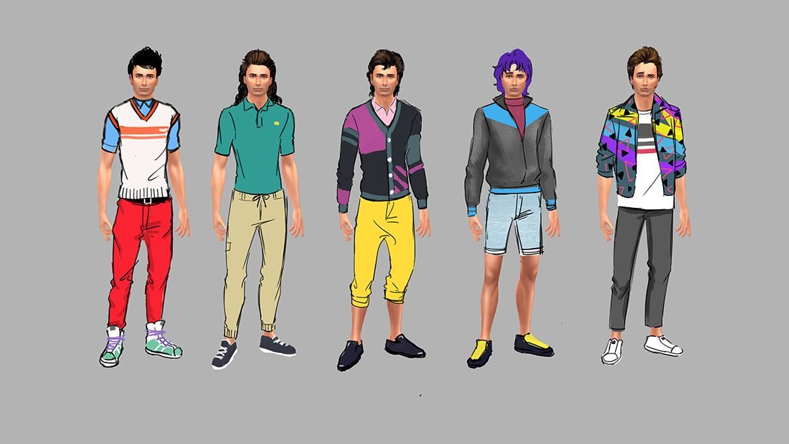 Si hubiera ganado el tema “arcade”, se habrían preparado estos llamativos conceptos de ropa ochentera para la votación de estilos de diseño.