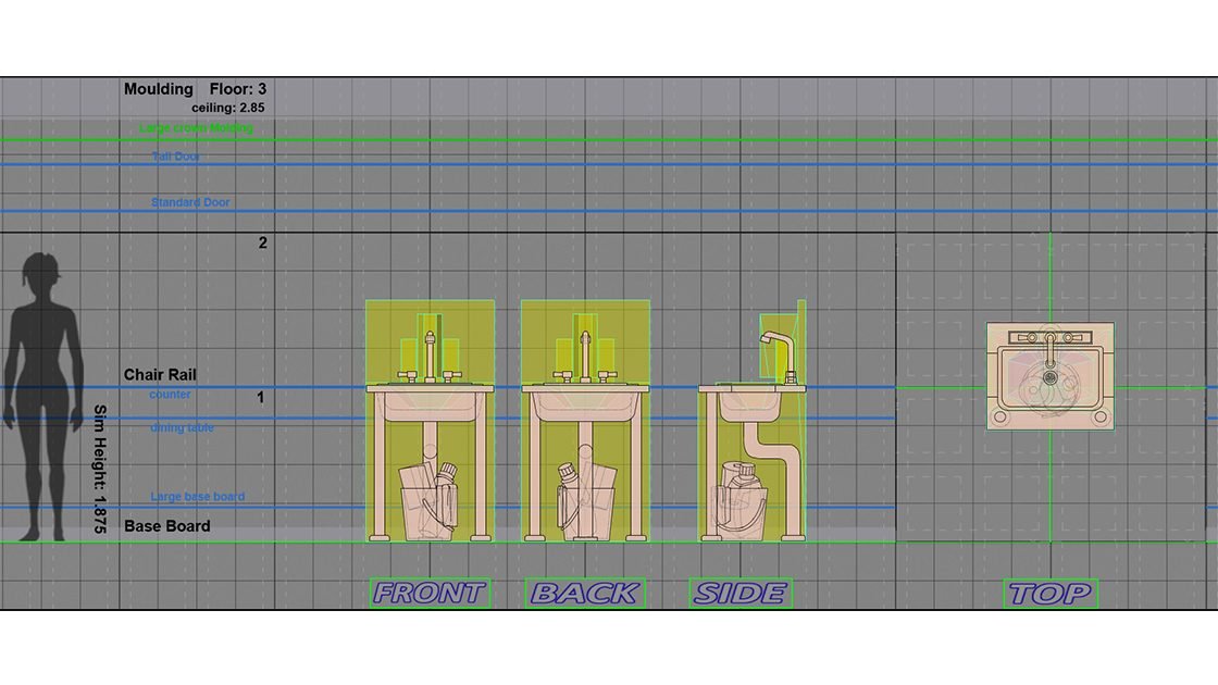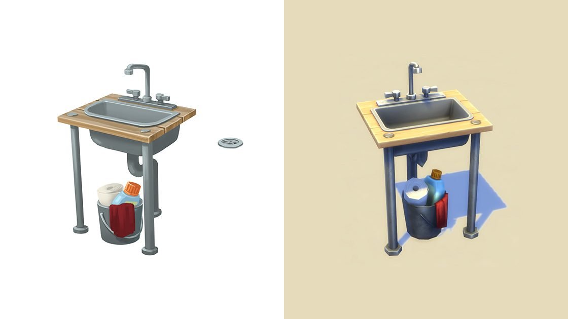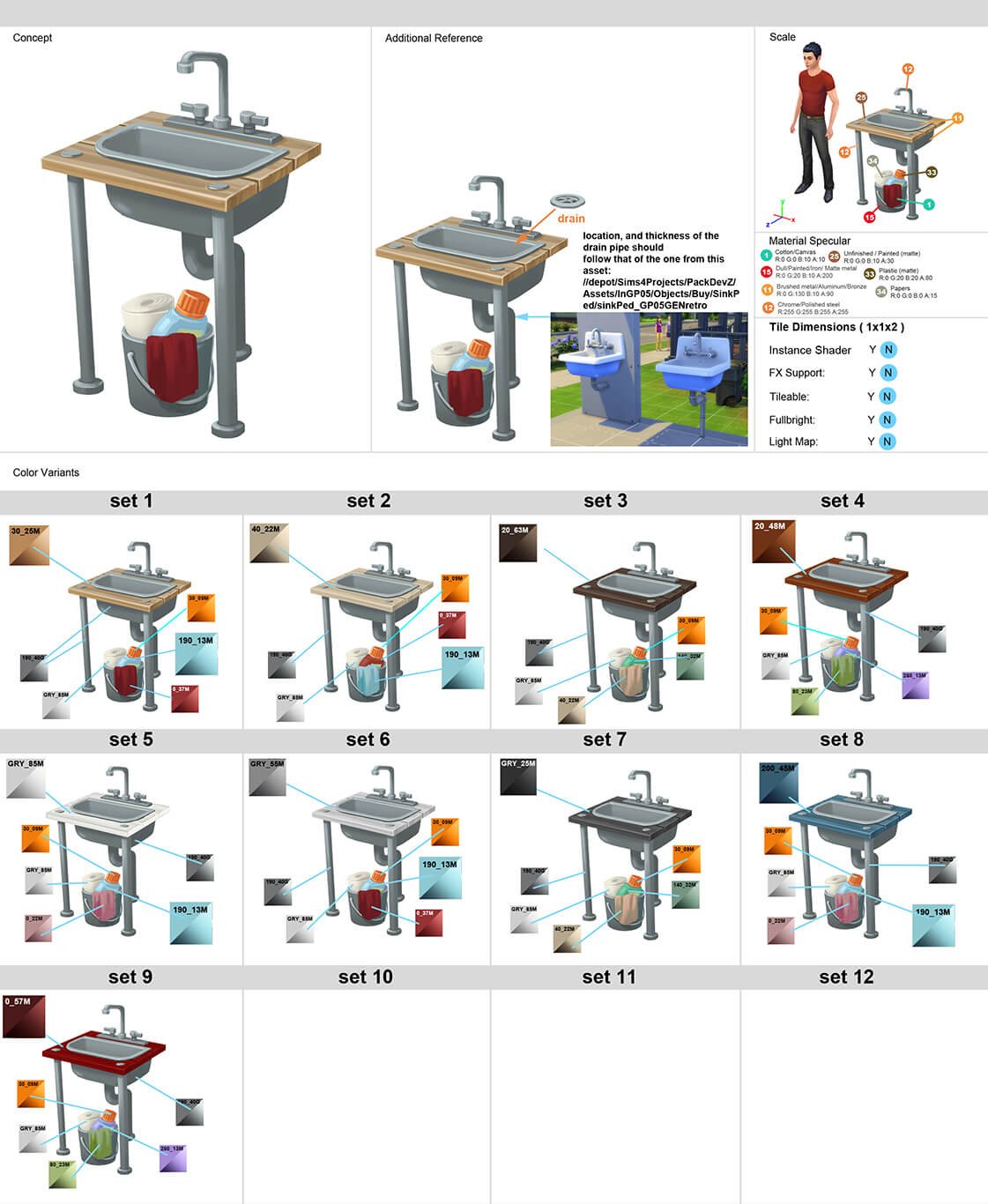 El diseño de un fregadero desde el arte conceptual hasta el resultado final, pasando por la guía de colores y el dibujo ortogonal.