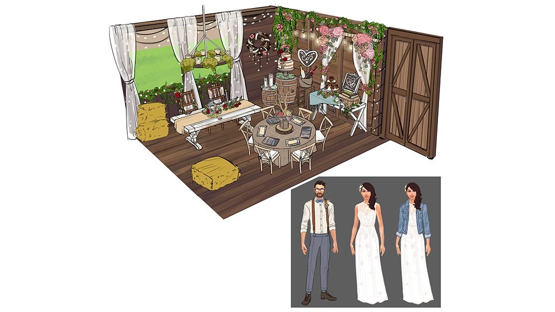 Teníamos preparado un estilo de diseño de boda en una granja en caso de que los jugadores seleccionaran el tema “wedding”.
