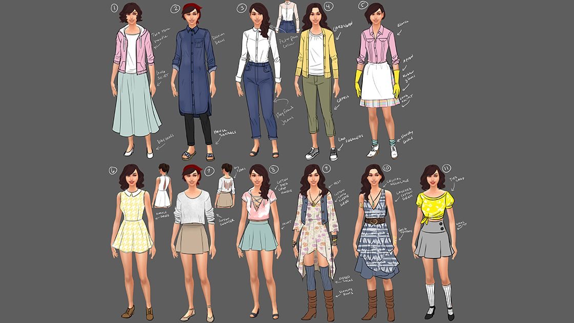 Primeros bocetos del estilo de las vestimentas para combinar con el tema eco living.