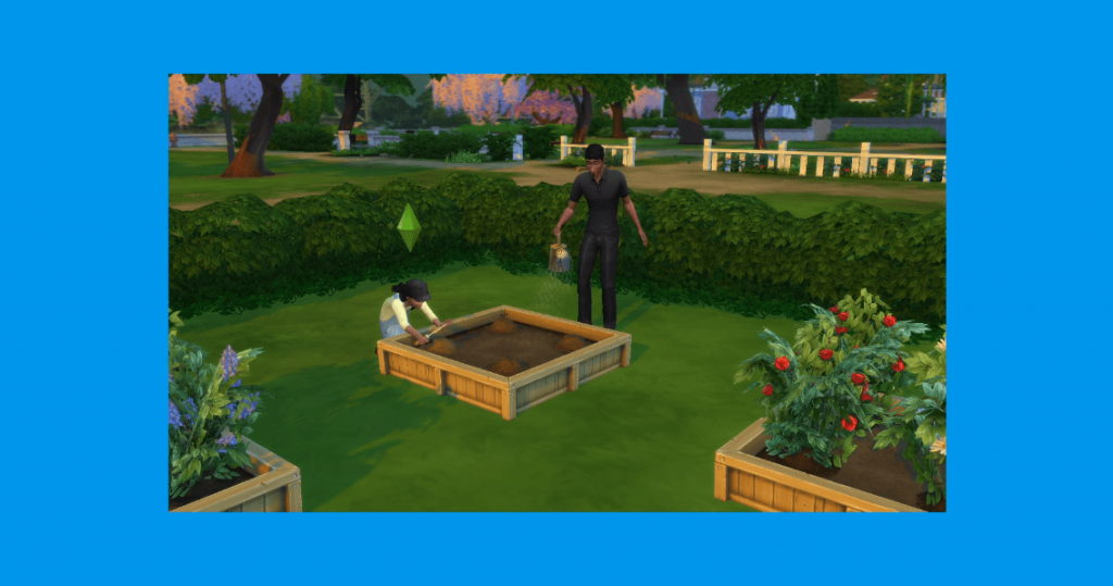 Todos los Sims que tengan suficiente habilidad mental tendrán una nueva opción en cualquier maceta o contendor de jardín para plantar las semillas que tengan en el inventario.
