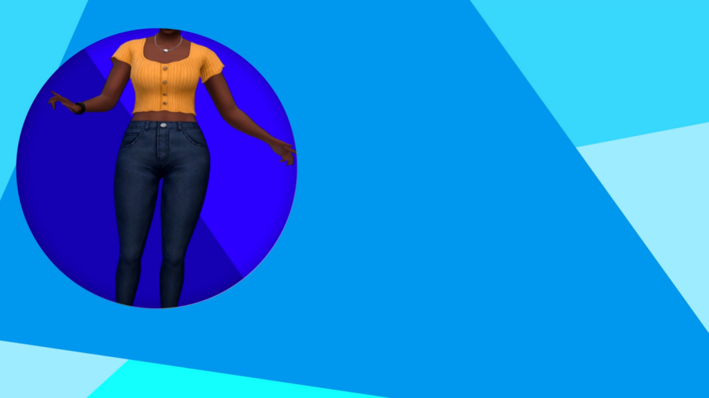 “Lo que quiero decir es que crear contenido personalizado como ropa o peinados en Los Sims es parecido a crear una muñeca. Puedo darle a mis Sims casi cualquier aspecto o estilo que quiera a través del juego o con contenido personalizado publicado en la comunidad. Pero si hay algo que no puedo encontrar con artículos disponibles, puedo hacerlo yo misma. Los pantalones de mezclilla y el top añadidos a la actualización del aniversario son prendas muy sencillas que adoro usar en mis Sims, ya que están de moda y es el estilo que más me gusta ponerles a los Sims que creo”.