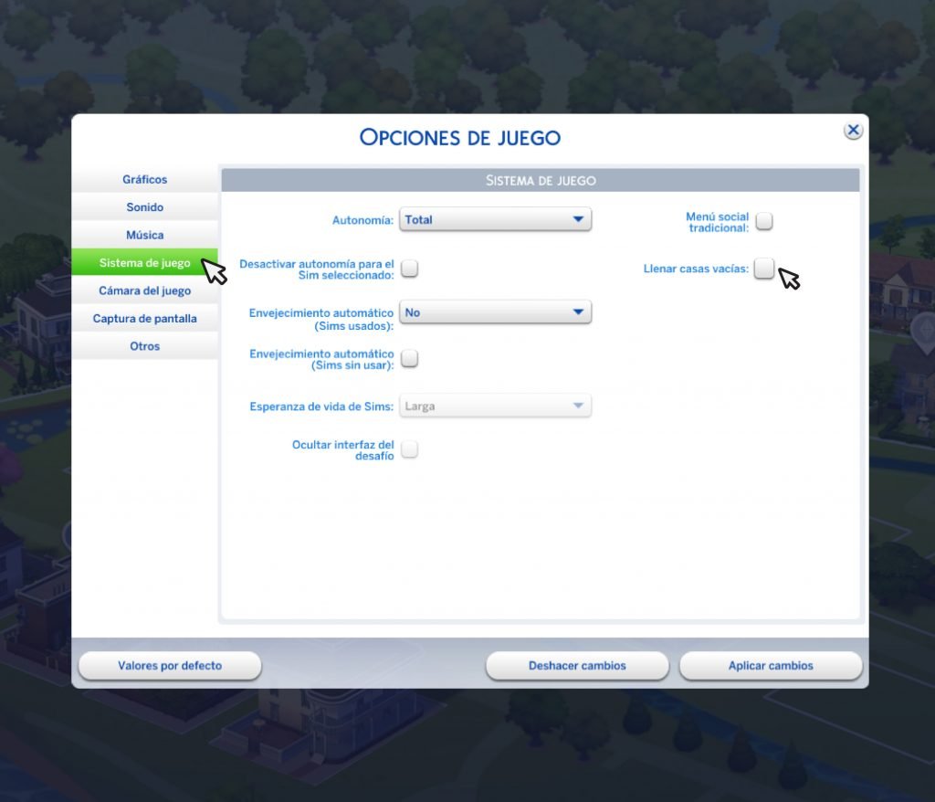 Toma en cuenta que tu juego incluso genera familias aleatorias para rellenar las casas vacías de tu mundo, para evitar esto puedes ir al botón de Menú > Opciones de juego > Sistema de juego y apagar la casilla de ”Llenar casa vacías”.