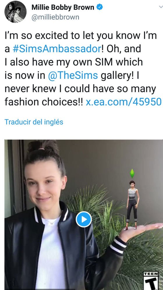 Pero a diferencia de otros anuncios de celebridades para Los Sims 4 el tweet no incluía el hashtag #ad lo que posiblemente significa que vendrán mas cosas bajo el hashtag #SimAmbassador que Millie utilizó en Twitter.