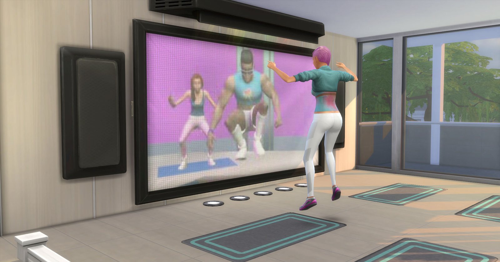 Regresaron los aerobics a Los Sims, ¿recuerdas cuando podías encender la tv en Los Sims 2 y comenzar a perder kilitos? pues ya lo podrás hacer nuevamente con este pack. Hay dos tipos de ejercicio y lo mejor es que tu Sim en verdad se sincroniza con los que están haciendo en la tv.