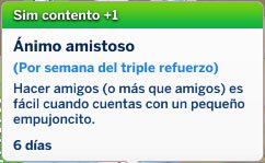 Esta opción le dará a tu Sim el estado de ánimo “Amistoso” que necesita para que sus relaciones crezcan más rápido, este estado de ánimo durará 6 días (Sim)