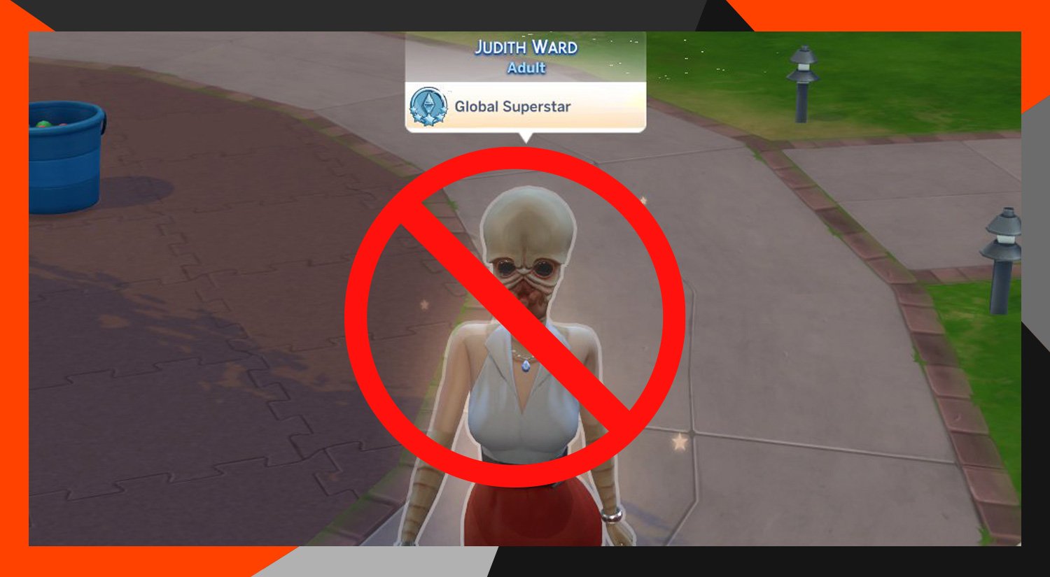 This is a rather comical image. I also want to ensure people know this was intentionally applied to this sim. We do not allow any of the alien CAS to be randomly applied. We intentionally turned it off to avoid your NPC Sims using these assets.