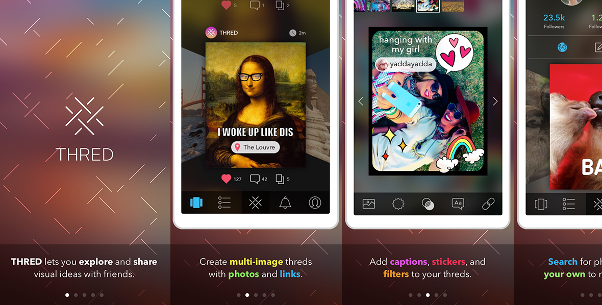 THRED, es el resultado de dos años de trabajo de Wright y fue lanzada el jueves pasado. La app está construida alrededor de una serie de fotos, memes, o imágenes que hayan sido sacadas de una búsqueda rápida en internet y que el usuario pueda personalizar, titular y encadenar juntas.